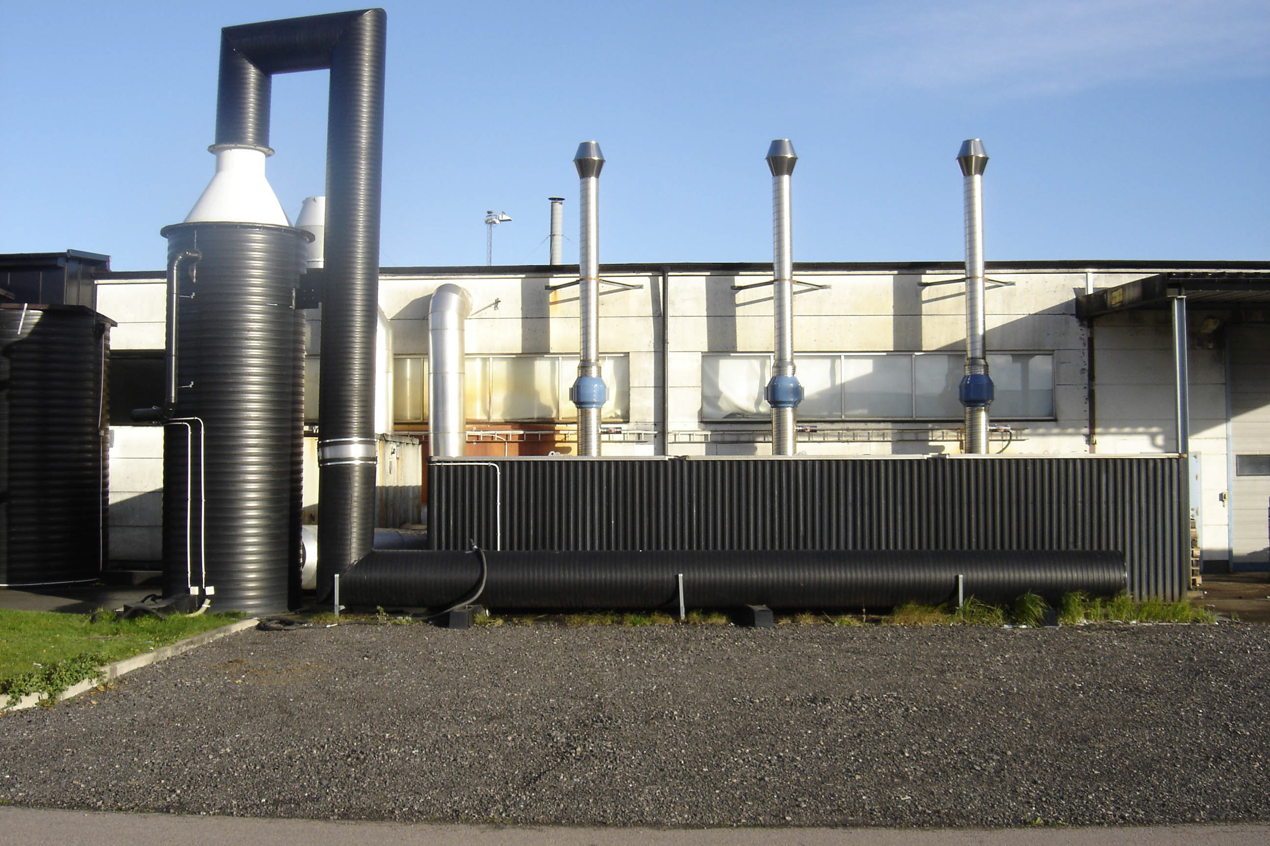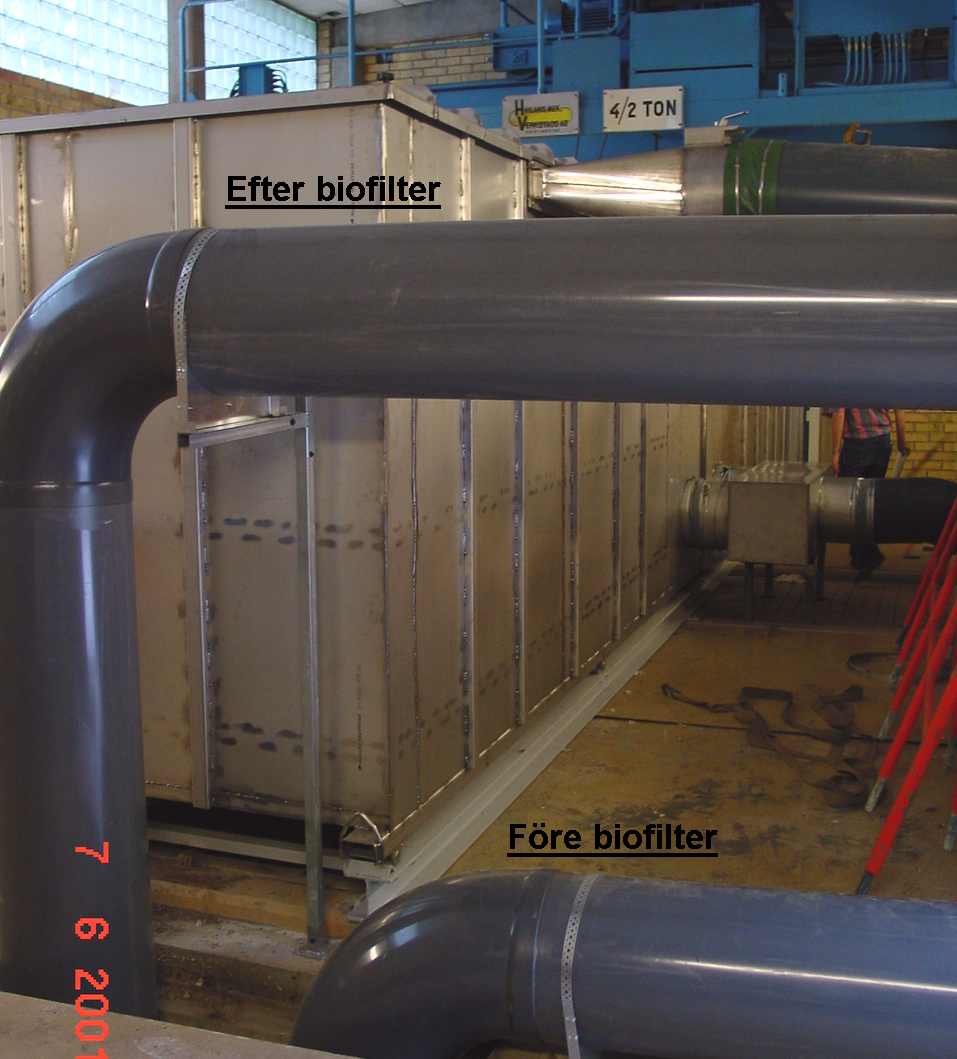 Biofilter är i detta fall bakterier som omvandlar VOC till CO2 och H2O. De använder VOC som sin kolkälla dvs mat. Gasen förs genom ett fastbäddfilter vars ytor är täckta med en biofilm som bakterierna lever i. Biofilmen växer på ett organiskt bärarmaterial. Materialet innehåller nödvändiga näringsämnen samt hålls fuktigt. I allmänhet används dessa filter för att ta bort illaluktande föreningar som kommer från tex avloppsreningsverk, slakterier eller viss typ av livsmedelsindustri.